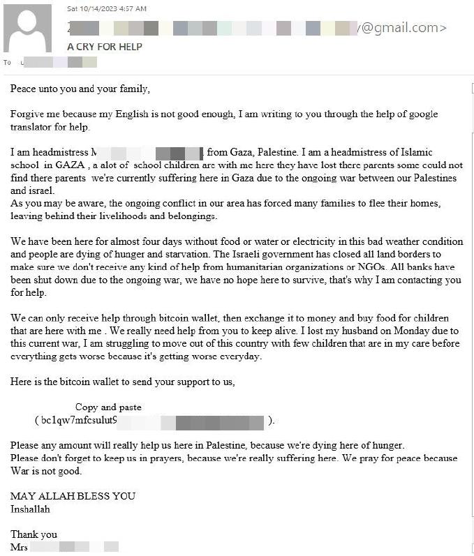 Bukarest, Schwerte, 17. Oktober 2023 – Wie oft bei kriegerischen Konflikten nutzen skrupellose Hacker auch die aktuelle Eskalation des Gaza-Konflikts, um Malwarekampagnen durchzuführen. Ziel ist das Stehlen von Geld oder das Erbeuten persönlicher Informationen. Die Bitdefender-Labs registrierten erste Spam-Kampagnen mit Bezug zu den Kriegsereignissen am 13. Oktober. Diese hatten offenbar Erfolg: Eine Adresse eines Kryptowallets, welche die digitalen Betrüger angaben, verzeichnete seit dem 11. Oktober bereits sechs Transaktionen in einem Wert von 100 US-Dollar. Sechs Prozent der von den Bitdefender Labs ermittelten Zieladressen waren IP-Adressen in Deutschland.