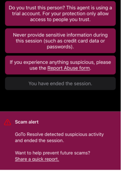 Mithilfe einer speziell trainierten KI sucht GoTo Resolve bei der Betrugserkennung aktiv nach Verhaltensweisen und Ausdrücken, die auf solche Scams hindeuten. Wenn die Lösung etwas erkennt, schreitet sie sofort ein. Sie beendet die Sitzung automatisch, warnt den Endbenutzer und ermöglicht es, den vermuteten Betrug mit nur einem Klick zu melden. Durch die neue Funktion konnten bereits Tausende von potenziellen Betrugsfällen identifiziert und die Zahl der Meldungen von Vorfällen um mehr als 81 Prozent reduziert werden. In den kommenden Monaten plant GoTo, diesen Schutz auf Verbindungen mit Desktop-PCs auszuweiten.