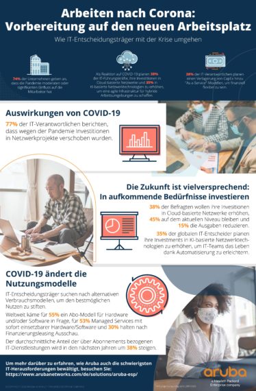 Eine Studie von Aruba, ein Hewlett Packard Enterprise Unternehmen, zeigt, dass IT-Entscheidungsträger in der EMEA-Region als Reaktion auf die Corona-Krise mehr und mehr in Cloud- und KI-basierte Netzwerktechnologien investieren, um das Geschäft wieder anzukurbeln.