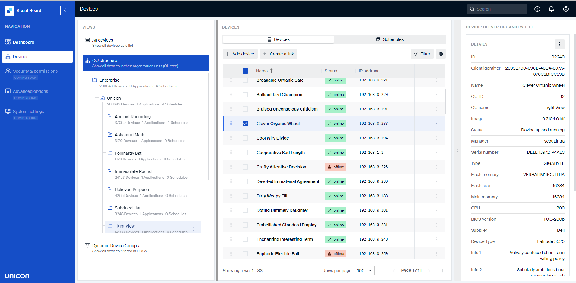 Diesen Herbst zeigt Unicon die nächste Evolutionsstufe betriebsumfassender Endpoint-Verwaltung. Das Unternehmen spendiert seiner bewährten „Scout Console“ eine neue webbasierte Verwaltungs-Lösung. Scout Board kommt in neuem Look and Feel und basiert auf aktuellsten intuitiven UI/UX-Konzepten für Organisationsmanagement und Geräteverwaltung. Das neue Funktionspaket nutzt dabei bestehende Scout-Server und dazugehörige Datenbanken, sodass die Inbetriebnahme schnell und unkompliziert vonstatten geht. Es besteht keine Notwendigkeit, Konfigurationen, Berechtigungen, etc. anzufassen oder zu konfigurieren.
